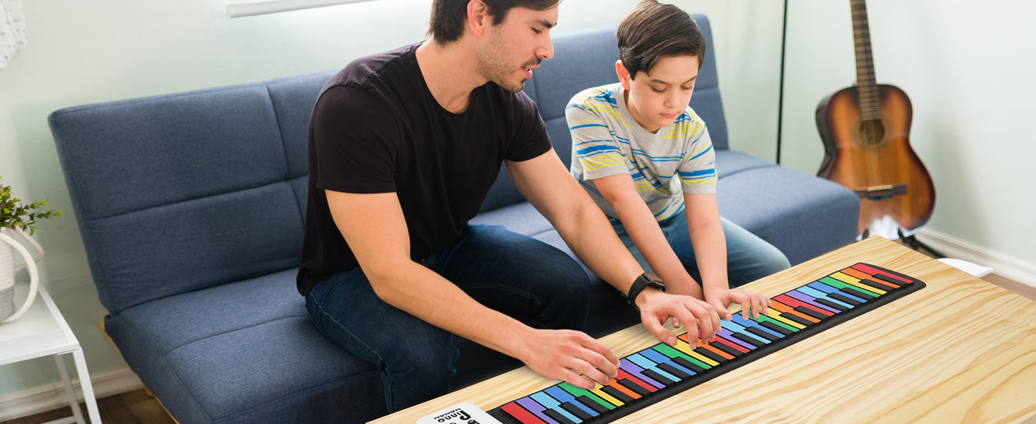 49 Regenboogkleurige toetsen van hoogwaardige, milieuvriendelijke siliconen. De zachte pianopad is draagbaar en flexibel. Perfect voor kinderen. Oplaadbaar dus overal mee naar toe te nemen!